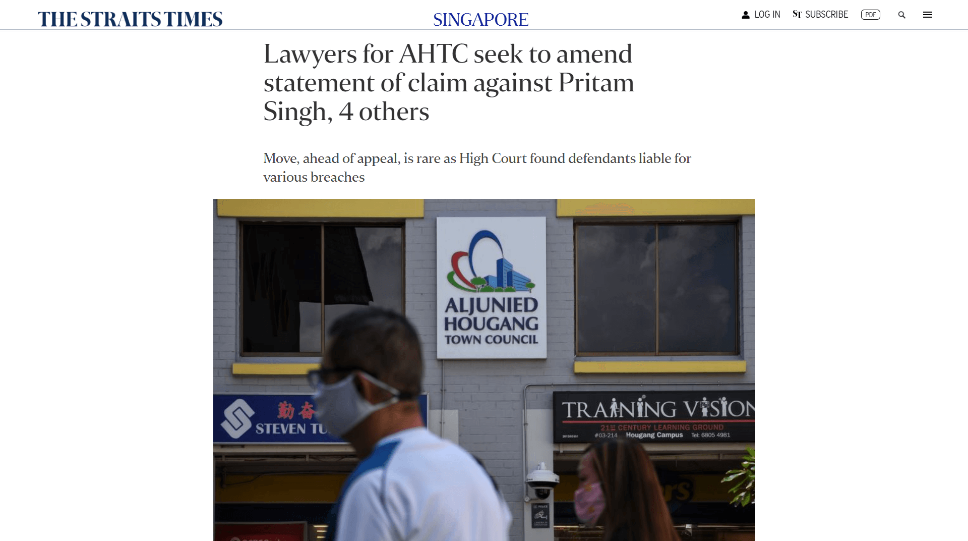 Managing Partner Peter Doraisamy was quoted in The Straits Times in an article titled: Lawyers for AHTC seek to amend statement of claim